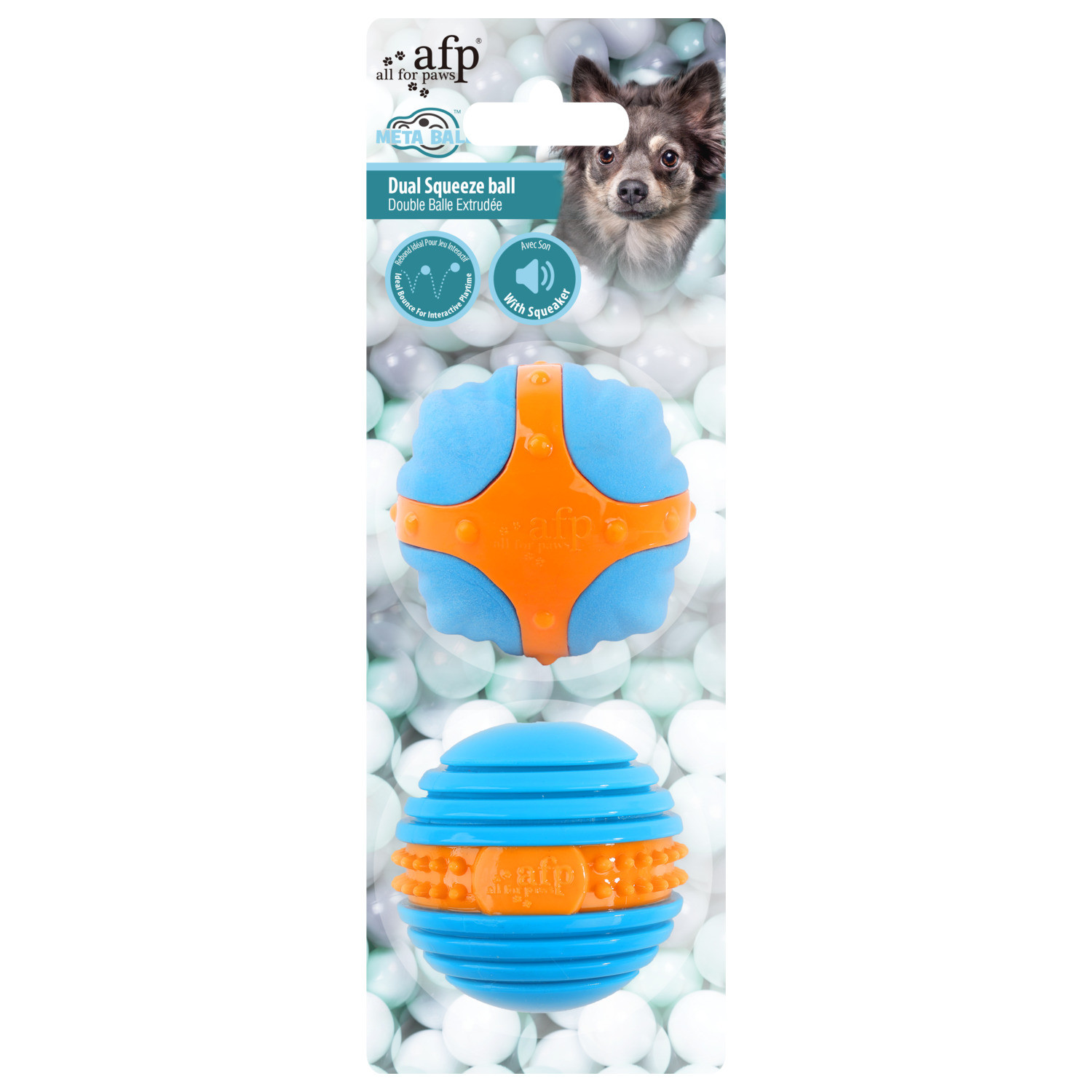 All For Paws Dual Squeeze Ball - Hondenspeelgoed - 6.3x6.3x6.3 cm Oranje Blauw