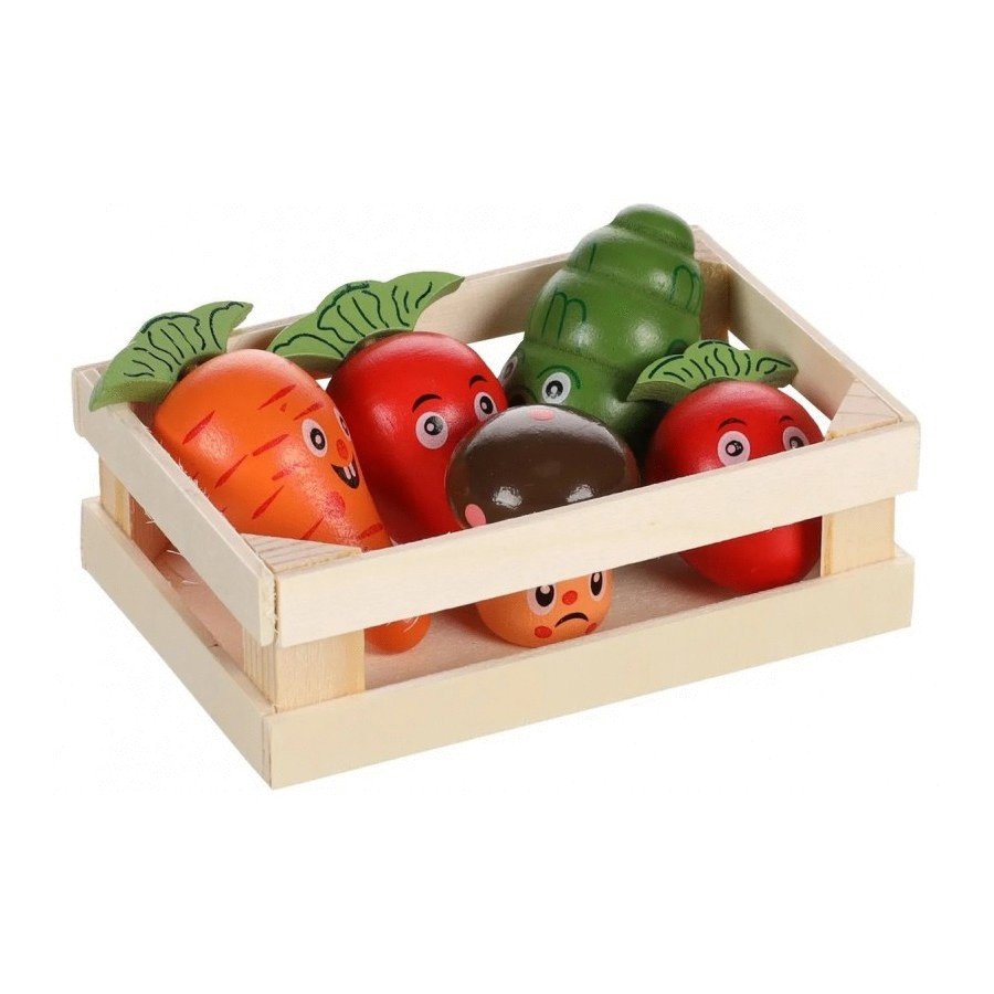 Knaagdierenspeelgoed van hout in vrolijk groentekistje