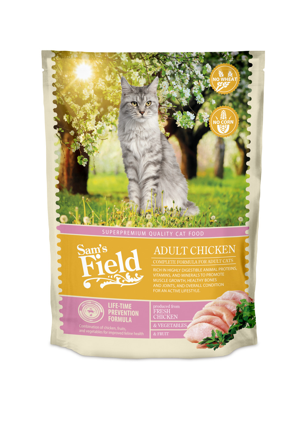 Wanneer je het beste voor hebt met je kat, geef je hem natuurlijk een voeding die goed aansluit op zijn dagelijkse behoeften. Een verantwoorde keuze zijn de voedingen van Sam’s Field, zoals Sam’s Field Adult Chicken. Deze natuurlijke voeding is graanarm en tarweglutenvrij en bevat kip en rijst als basisingrediënten.
